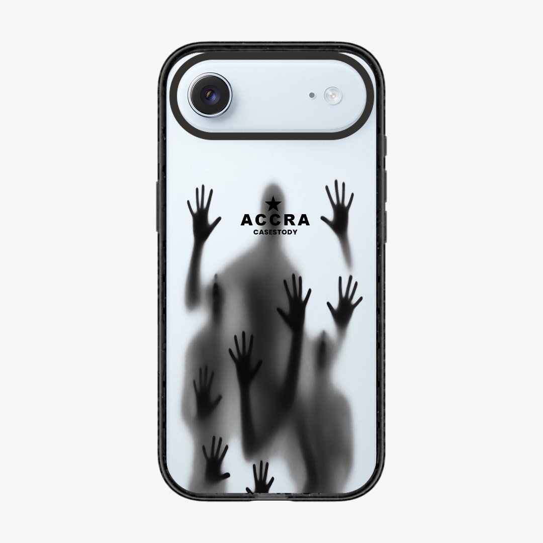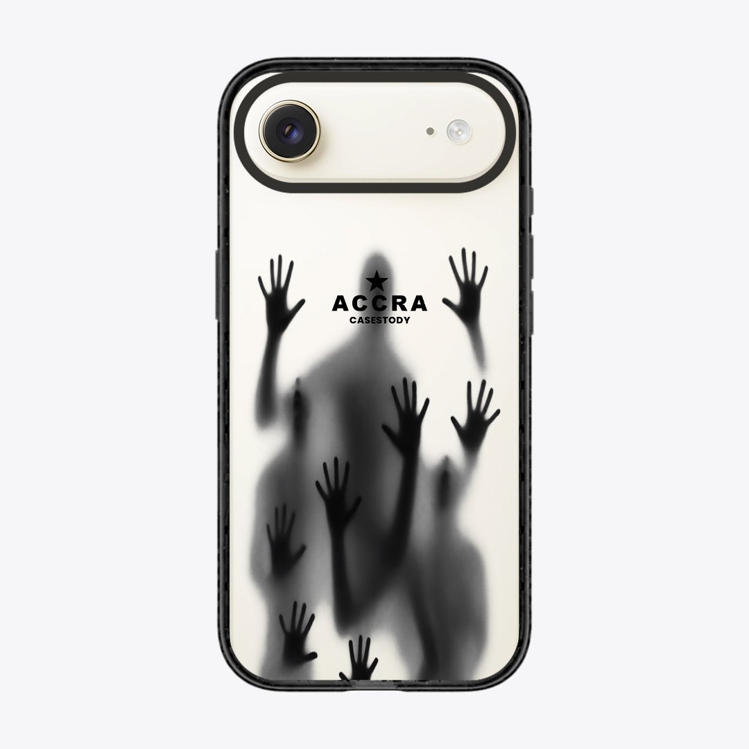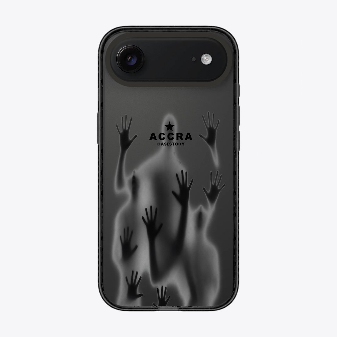 The Accra by Night Case captures the deeper and quieter side of the city after dark. The design uses shadowy silhouettes and raised hands to reflect emotion, movement, and the unseen stories of Accra at night. It is bold, artistic, and thought-provoking, made for people who connect with creative and expressive visuals.