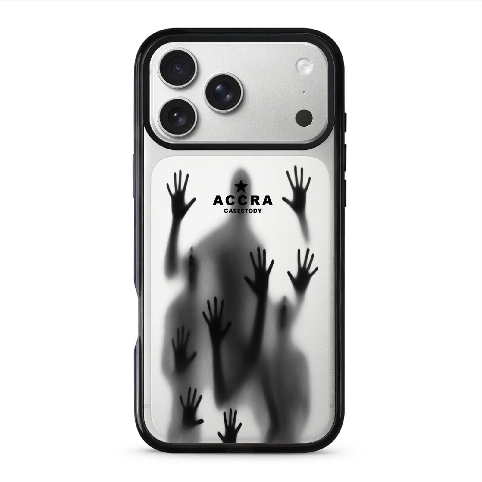 The Accra by Night Case captures the deeper and quieter side of the city after dark. The design uses shadowy silhouettes and raised hands to reflect emotion, movement, and the unseen stories of Accra at night. It is bold, artistic, and thought-provoking, made for people who connect with creative and expressive visuals.