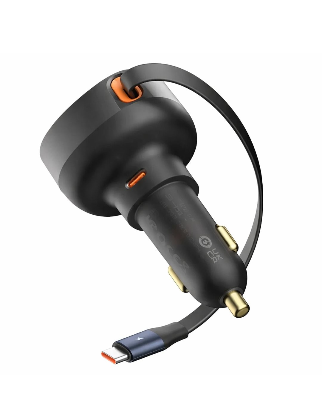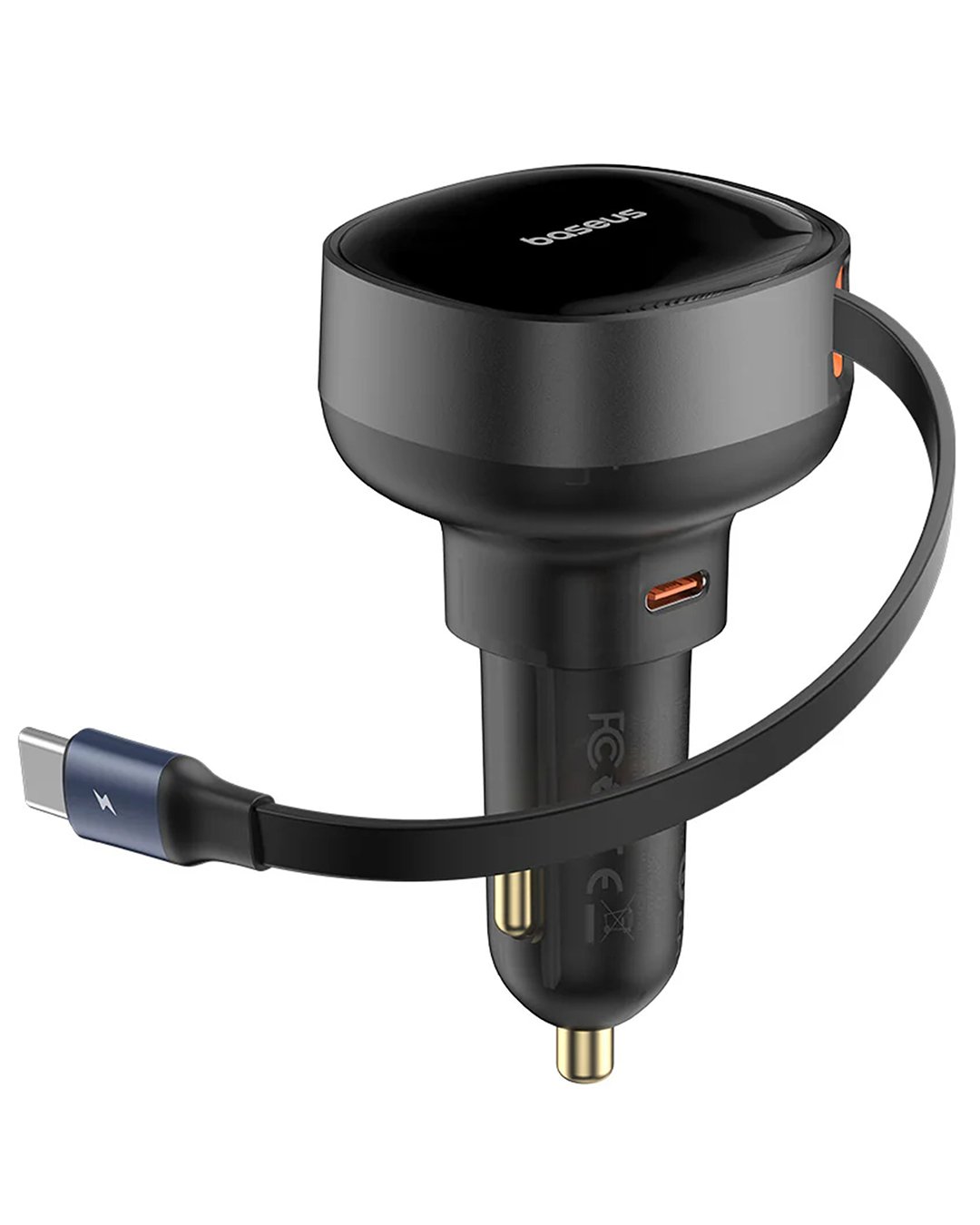 The End of Cable Clutter The Baseus Enjoyment Pro 60W Car Charger is the ultimate cockpit upgrade. Featuring a built-in, 70cm retractable USB-C cable and an additional high-speed USB-C port, you can fast-charge two devices simultaneously without the mess. Pull it out to charge, tug it to retract, it’s that simple.