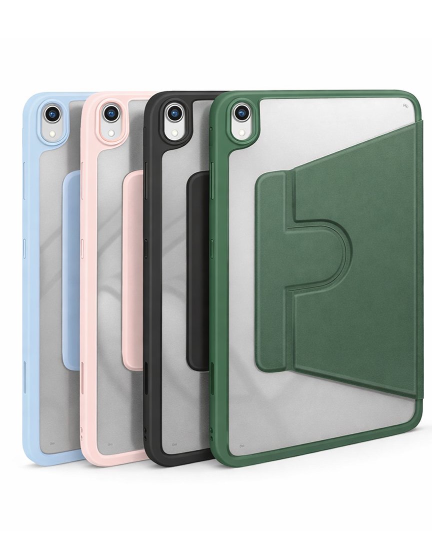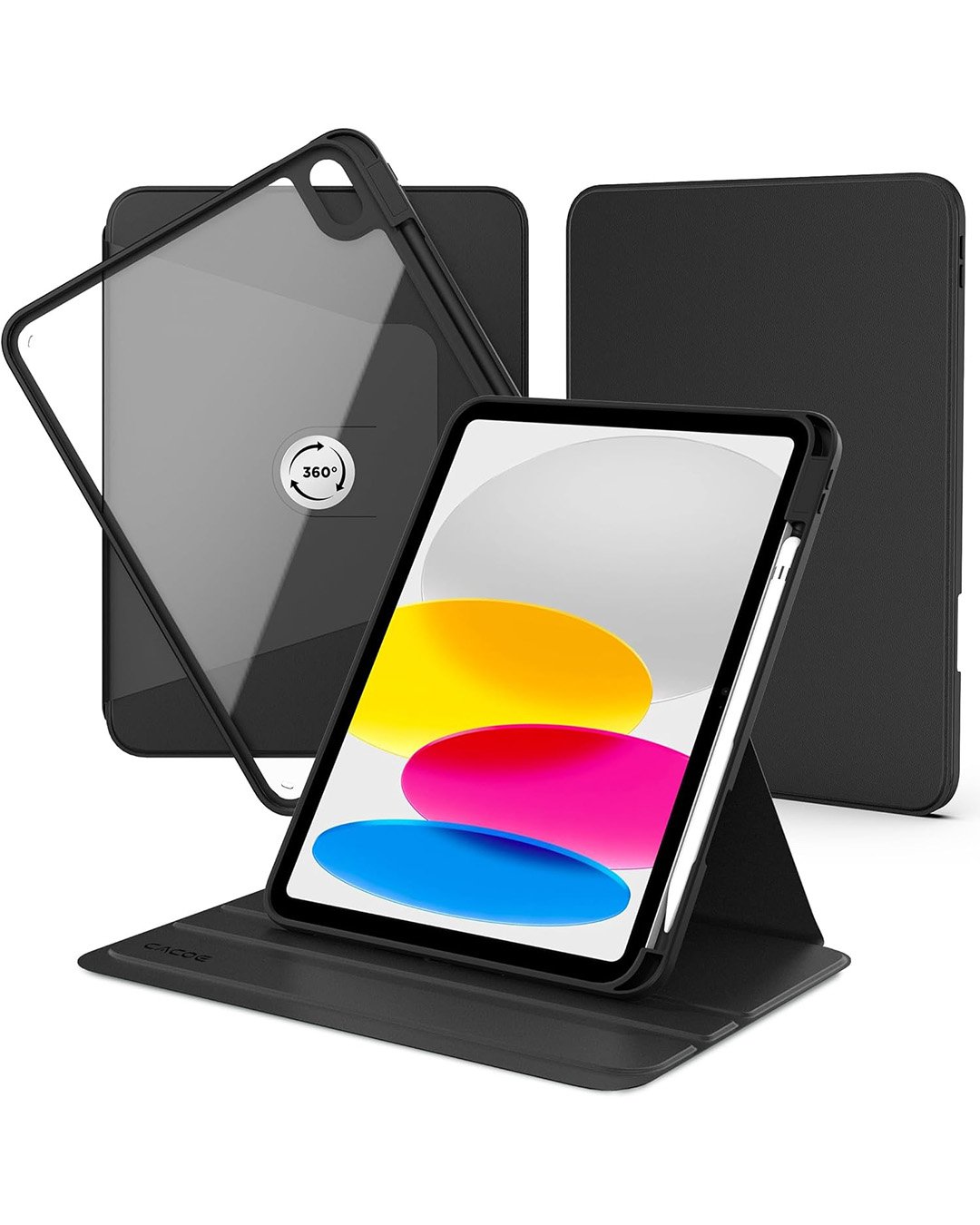 Protect your iPad without limits. The Cacoe 360 features a unique rotating swivel that allows you to switch between portrait and landscape modes instantly. With a crystal-clear hard back to show off your device’s original color and a reinforced bumper for drop protection, it’s the perfect blend of style and security.
