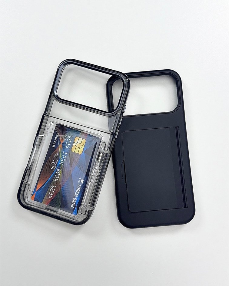 Simplify your carry with the Cardholder Case for iPhone 17 Pro Max. Designed for the modern minimalist, this case features a precision-engineered rear compartment to keep your most important cards secure and accessible. Whether you choose the crystal-clear aesthetic to show off your device or the stealthy matte black finish, you’ll enjoy a slim profile that eliminates the need for a bulky wallet. Durable, functional, and perfectly fitted for your Pro Max.