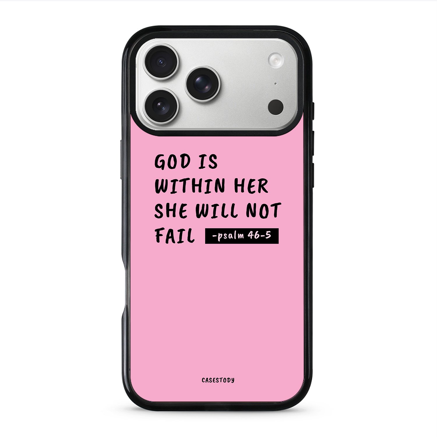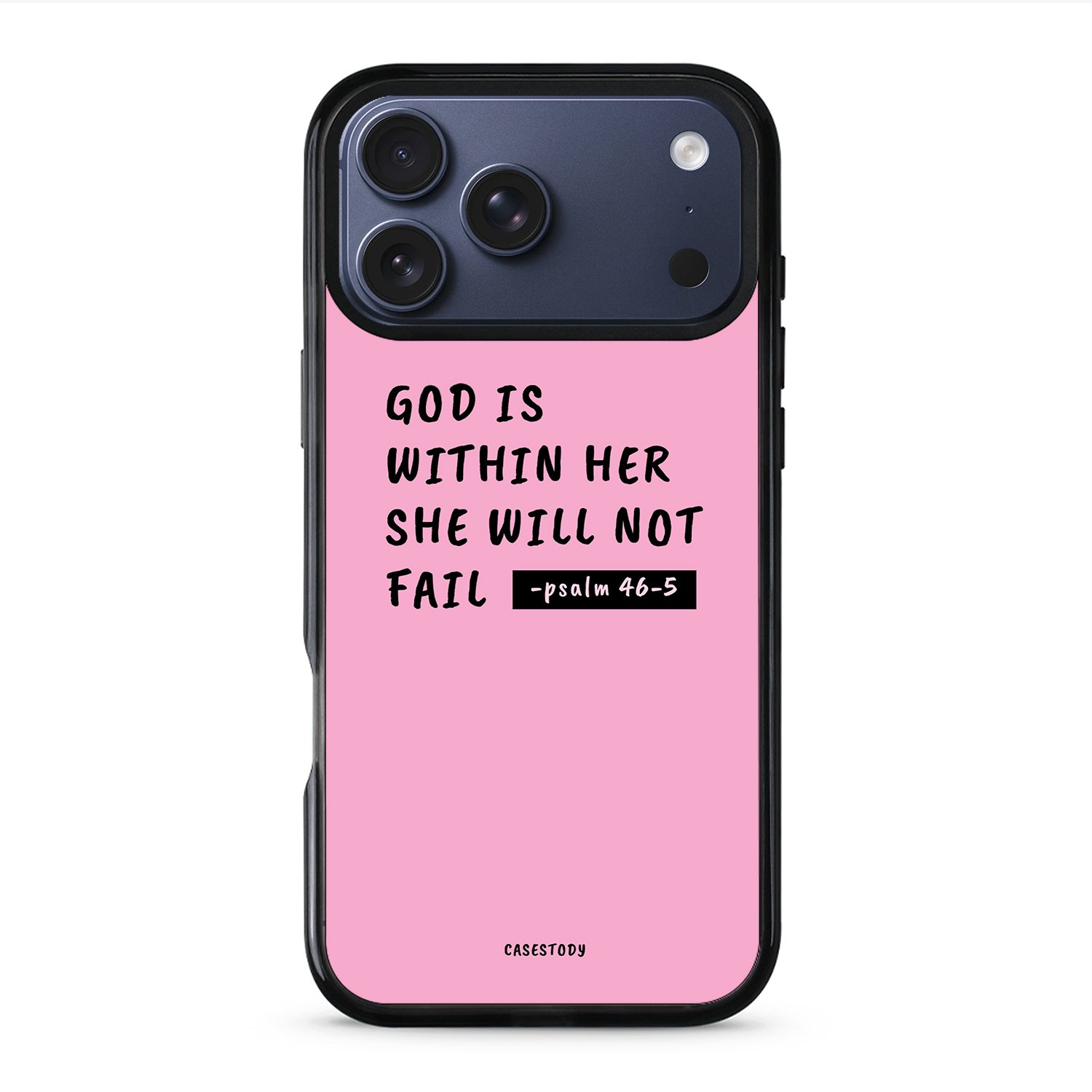 The God Within Her Case is inspired by faith, strength, and inner confidence. The soft pink background creates a calm and gentle feel, while the scripture from Psalm 46:5 delivers a powerful message of reassurance and belief.