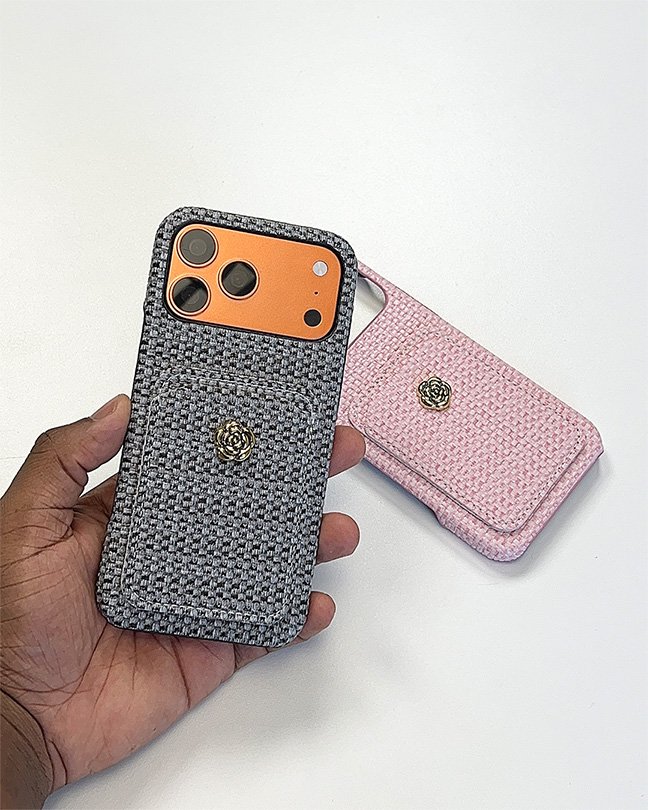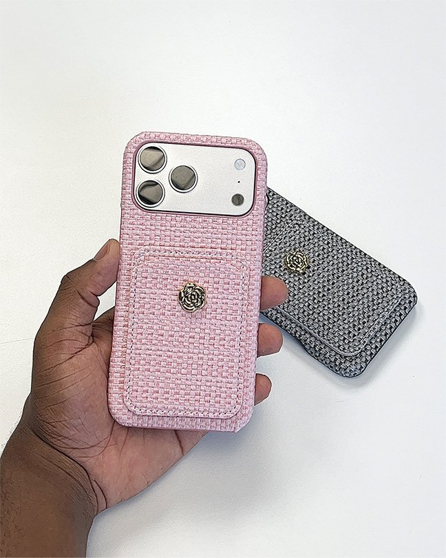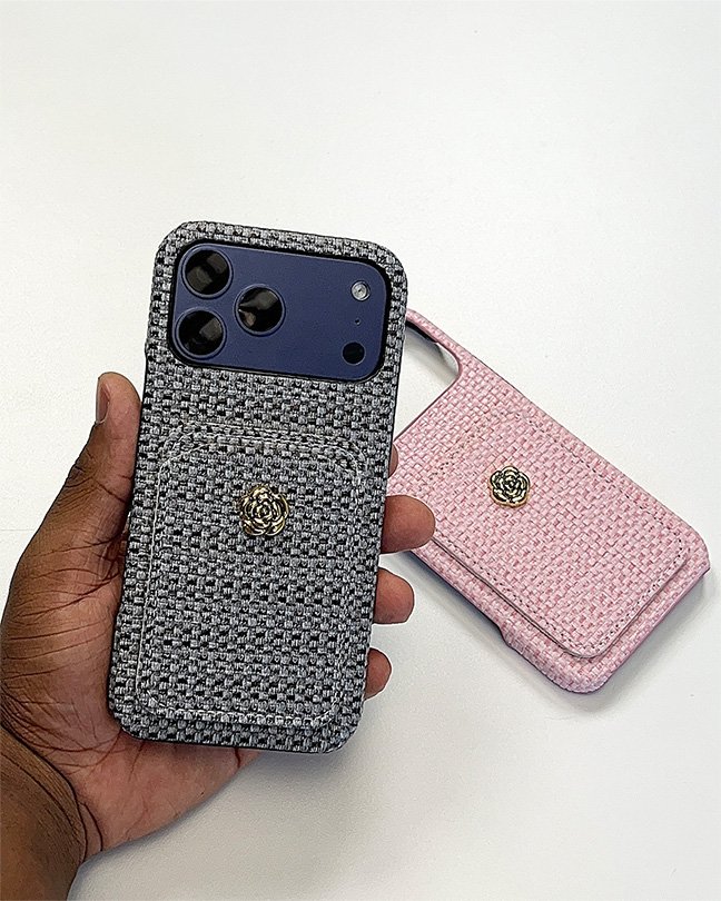 The Tweed Case brings timeless elegance to your everyday phone protection. Designed with a premium tweed-textured finish and luxury fashion-inspired detailing, this stylish iPhone case offers reliable protection while elevating your device with a chic, sophisticated look. Slim, protective, and fashionable — available in Pink and Black.