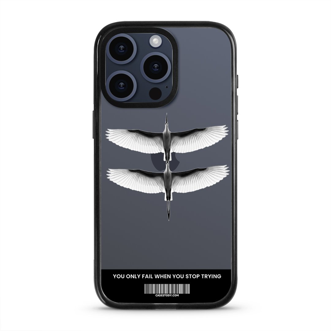 The Velocity Case is inspired by motion, progress, and the power of persistence. The flying birds represent freedom, speed, and forward movement, while the message “You Only Fail When You Stop Trying” serves as a daily reminder to keep going.